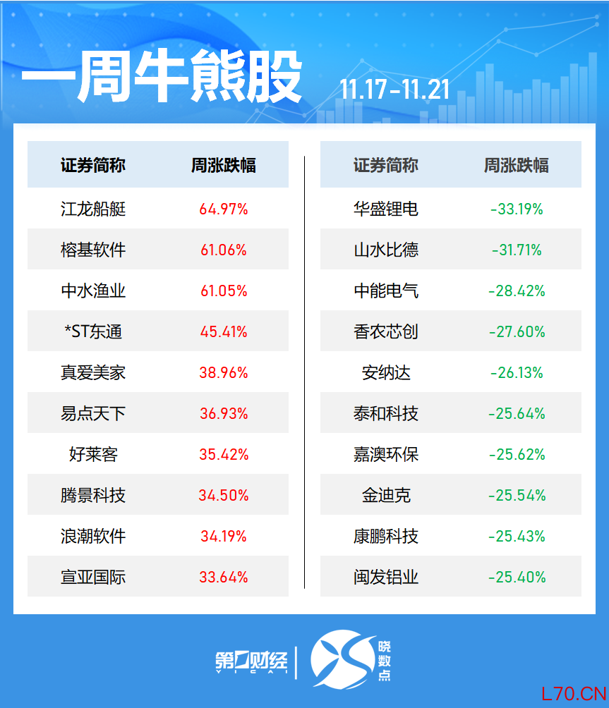 一周牛熊股丨这只军工股大涨超60%,17股涨超30%